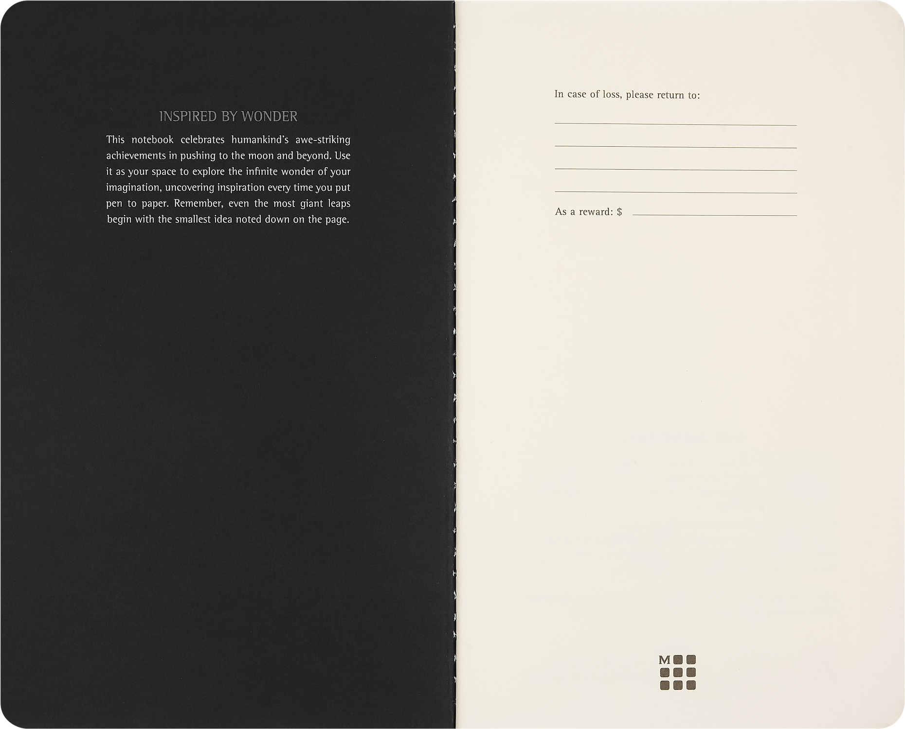 Комплект з двох зошитів Cahier NASA без ліновки з обкладинками, натхненними поверхнею Місяця, втілює дух досліджень і нагадує: навіть найсміливіші місії починаються з однієї записаної ідеї. Ідеальний подарунок для тих, хто мислить нестандартно, творить і досліджує — мрійників, винахідників і шукачів натхнення.